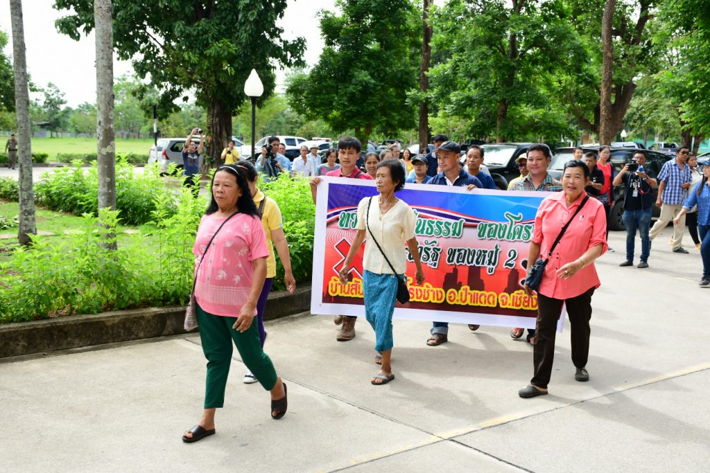 เมื่อวันที่ 3 มิ.ย.2562 ผู้สื่อข่าวรายงานว่า ที่ศาลากลาง จ.เชียงราย กลุ่มชาวบ้านจากหมู่บ้านสันกอง หมู่ 2 ต.โรงช้าง อ.ป่าแดด จ.เชียงราย ประมาณ 100 คน นำโดยนายพงศ์เดช ลาวตูม และแกนนำประมาณ 9 คน เดินทางมาชุมนุมเพื่อเรียกร้องให้นายประจญ ปรัชญ์สกุล ผู้ว่าราชการ จ.เชียงราย ดำเนินการกรณีกลุ่มชาวบ้านเคยร้องเรียนเรื่องโครงการซ่อมแซมระบบประปาหมู่บ้านสันกอง ด้วยวงเงินงบประมาณ 250,000 บาท เมื่อปีงบประมาณ 2560 ซึ่งเป็นส่วนหนึ่งของโครงการยกระดับศักยภาพหมู่บ้านเพื่อขับเคลื่อนเศรษฐกิจฐานรากตามแนวทางประชารัฐ แต่ปรากฎว่าจนถึงปัจจุบันโครงการยังไม่เสร็จและเมื่อมีการร้องเรียนให้ตรวจสอบ ปรากฎว่าคณะกรรมการระดับอำเภอพบข้อพิรุธมากมาย จนกระทั่งมีการยื่นหนังสือค้องเรียนต่อทางจังหวัดมาได้กว่า 1 ปีแต่ยังไม่มีความคืบแต่อย่างใด
