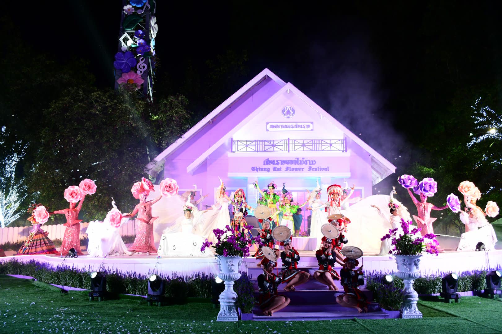 ขณะที่ภายในพิธีเปิดมีการจัดการแสดงอย่างงดงามอลังการโดยนางรัตนา จงสุทธานามณี ผู้ช่วยรัฐมนตรีประจำสำนักนายกรัฐมนตรี และเป็นผู้ริเริ่มจัดางานเชียงรายดอกไม้งาม และนายวันชัย จงสุทธานามณี นายกเทศมนตรีนครเชียงราย นำผู้ทรงคุณวุฒิร่วมเปิดงาน