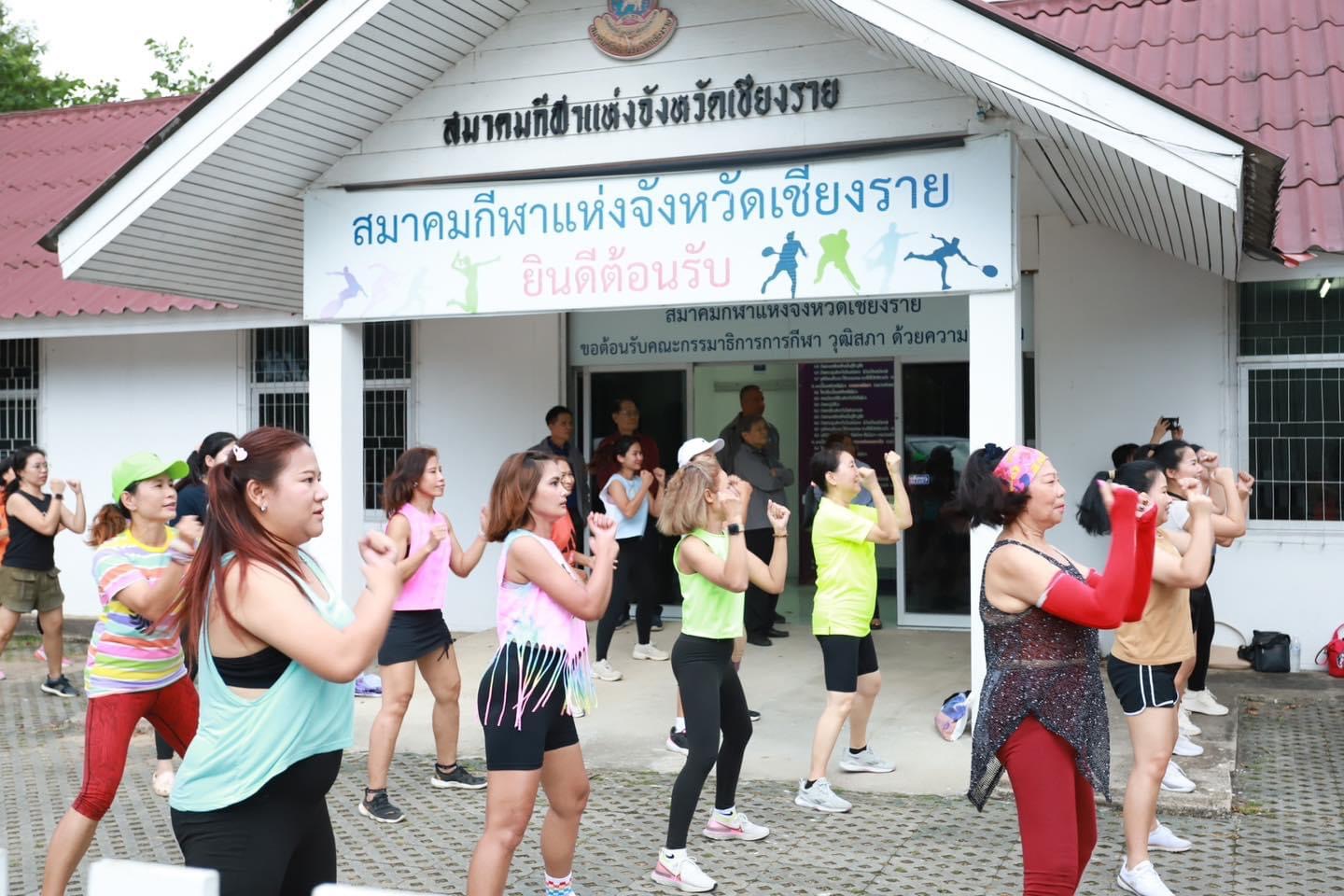 นางรัตนา จงสุทธานามณี นายกสมาคมกีฬาแห่งจังหวัดเชียงราย เป็นประธาน ในพิธีเปิดกิจกรรมเต้นเพื่อสุขภาพ ร่วมกับเทศบาลนครเชียงรายโดย นายวันชัย จงสุทธานามณี นายกเทศมนตรีนครเชียงราย จัดกิจกรรมเต้นเพื่อสุขภาพ ออกกำลังกายแบบการเต้นซุมบ้า ในระหว่างวันที่ 5 มิถุนายน – ธันวาคม 2567 ณ ลานหน้าสมาคมกีฬาแห่งจังหวัดเชียงราย สนามกีฬากลาง จังหวัดเชียงราย