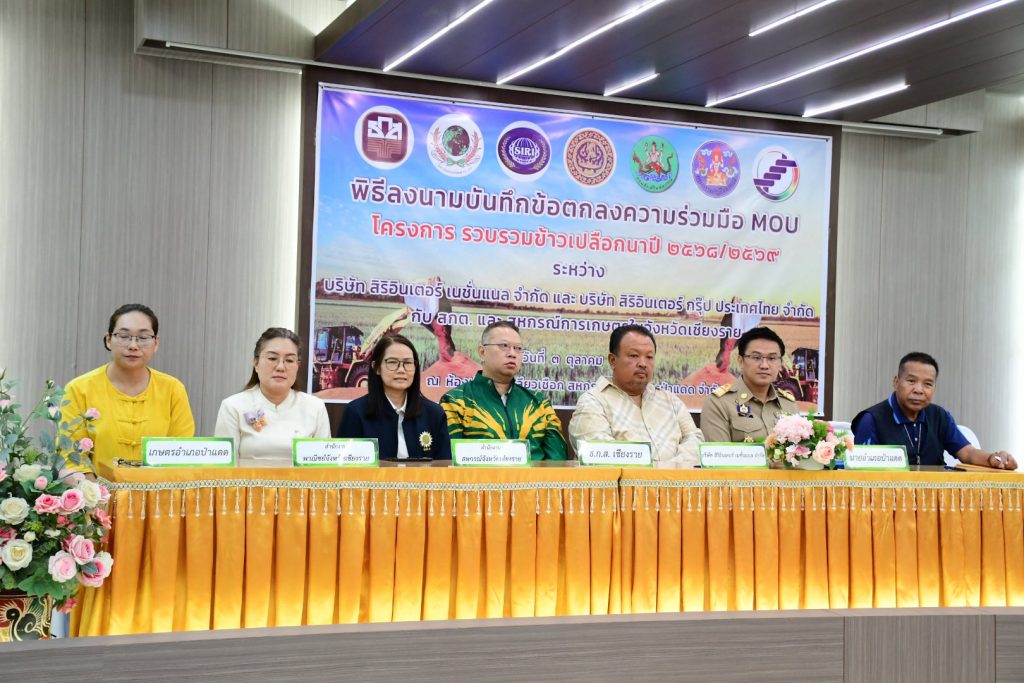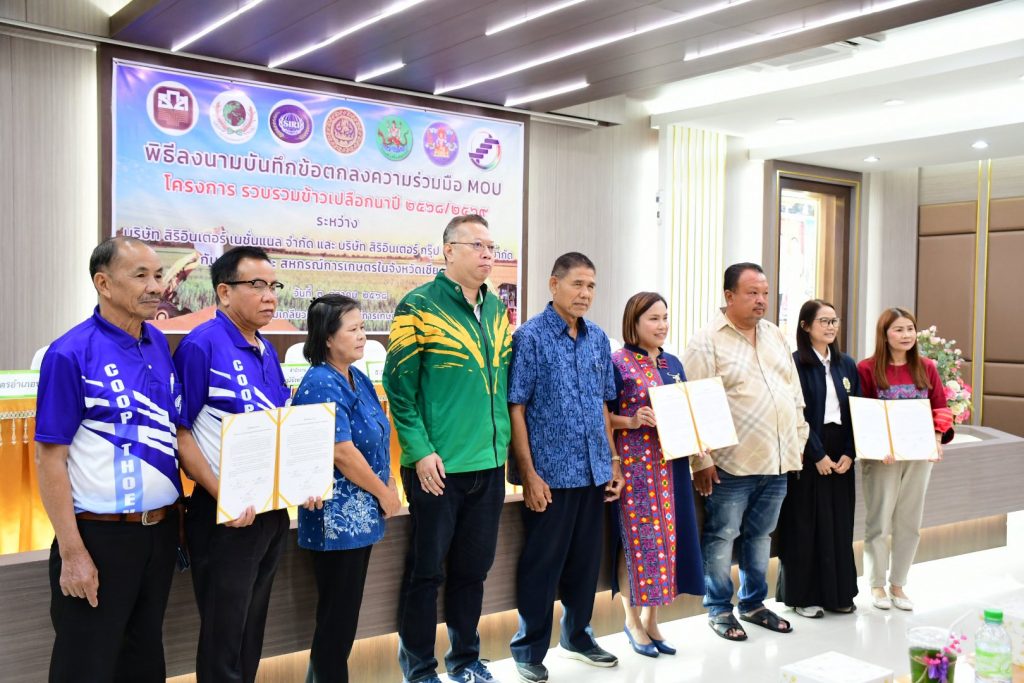 สหกรณ์การเกษตร 5 แห่ง ร่วมมือ บริษัท สิริอินเตอร์ฯ ลงนาม MOU รับซื้อข้าวเปลือกในราคายุติธรรม หนุนปลูกข้าวหอมมะลิ เพิ่มรายได้เกษตรกรเชียงราย