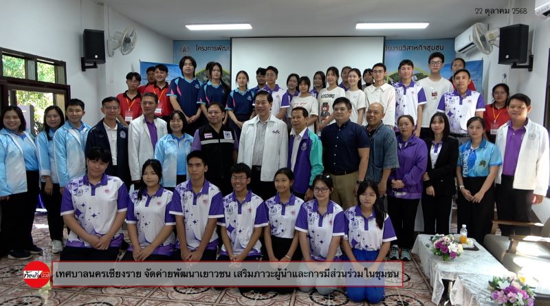 วันที่ 22 ตุลาคม 2568 นายวันชัย จงสุทธานามณี นายกเทศมนตรีนครเชียงราย เปิดโครงการค่ายพัฒนาเยาวชน เสริมภาวะผู้นำและการมีส่วนร่วมในชุมชน เพื่อปลูกฝังจิตสำนึกให้เยาวชนรักสิ่งแวดล้อม เห็นคุณค่าของธรรมชาติ และมีส่วนร่วมในการพัฒนาชุมชนอย่างสร้างสรรค์