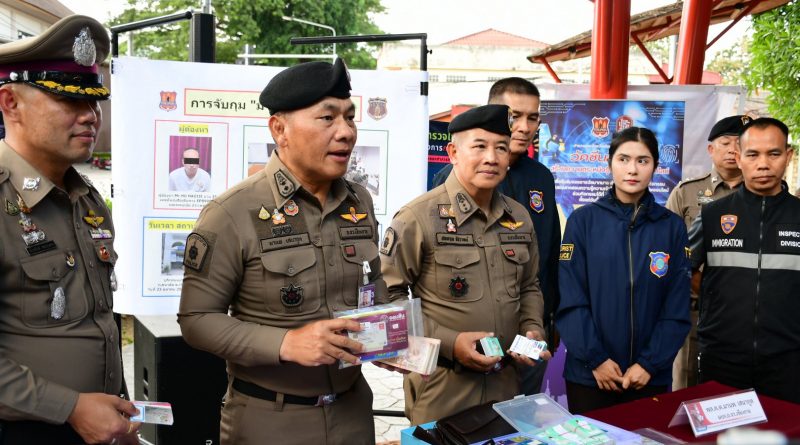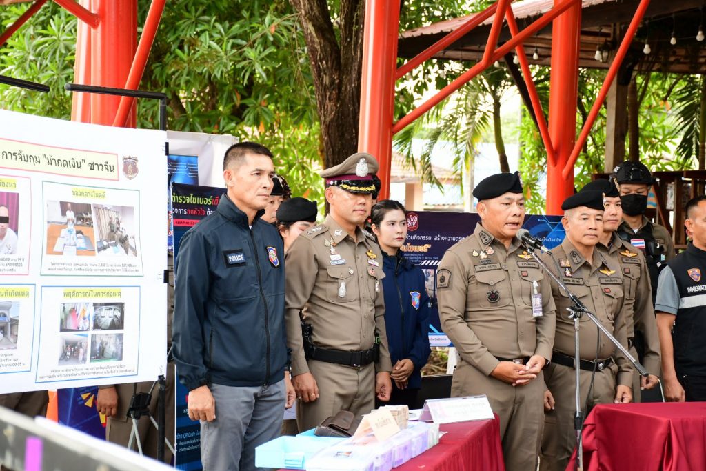 เมื่อเวลา 11.00 น.วันที่ 24 ต.ค.2568 ที่ร้านกาแฟปันรักษ์ อ.เมืองเชียงราย จ.เชียงราย พล.ต.ต.มานพ เสนากูล ผู้บังคับการตำรวจภูธรจังหวัดเชียงราย พ.ต.อ.ชลทฤษ ชัชวาลย์ รองผู้บังคับการตำรวจภูธรจังหวัดเชียงราย พ.ต.อ.เกียรติศักดิ์ จิตรประสาร ผกก.สภ.เมืองเชียงราย พ.ต.อ.อนุพันธ์ กันถารัตน์ ผกก.สภ.เชียงแสน พ.ต.ท.ธนวินท์ พวงมะลิ สารวัตรตำรวจท่องเที่ยวเชียงราย เจ้าหน้าที่ตรวจคนเข้าเมืองเชียงราย พร้อมด้วยเจ้าหน้าที่ ที่เกี่ยวข้อง ร่วมกันแถลงข่าวการจับกุม Mr.HU HAOJIE อายุ 35 ปี ชาวมณฑลหูเป่ย์ สัญชาติจีน ประเทศจีน พร้อมของกลางโทรศัพท์มือถือ ยี่ห้อ ไอโฟน รุ่น 14 สีน้ำเงิน จำนวน 1 เครื่อง โทรศัพท์มือ ยี่ห้อ วีโว่ สีฟ้า จำนวน 1 เครื่อง โน๊ตบุ๊คยี่ห้อLenovo รหัสเครื่อง DESKTOP-20B1900 จำนวน 1 เครื่อง บัตรเอทีเอ็ม จำนวน 2,057 ใบ เงินสดทั้งหมดจำนวน 537,900 บาท และของกลางรายการอื่นๆ และอีกราย สภ.เชียงแสน จับกุม นายรุ่งโรจน์ (สงวนนามสกุล) อายุ 35 ปี ชาว อ.แม่ฟ้าหลวง จ.เชียงราย พร้อมของกลาง สมุดบัญชีธนาคาร จำนวน 34 เล่ม บัตรเอทีเอ็ม จำนวน 38 ใบ ซิมการ์ด จำนวน 39 ซิม