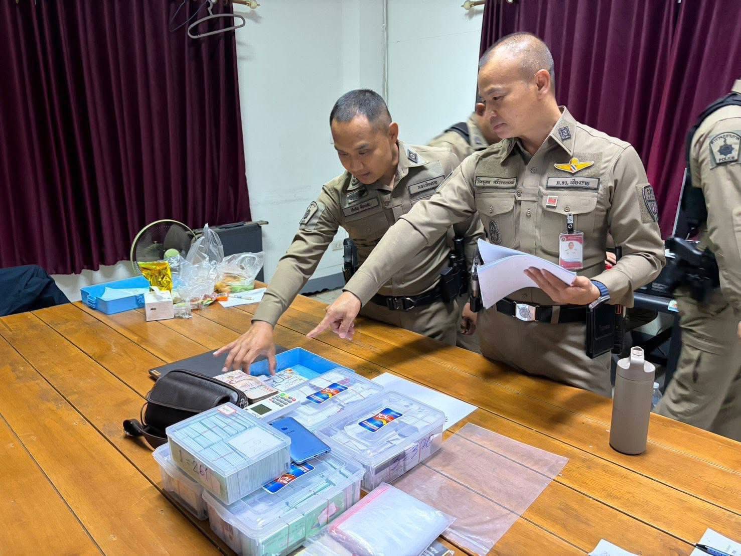 จากการขยายผล ตรวจค้นห้องพัก พบของกลางจำนวนมาก ได้แก่ บัตรเอทีเอ็ม รวม 2,057 ใบ จากหลายธนาคาร, โทรศัพท์มือถือ 2 เครื่อง, คอมพิวเตอร์โน้ตบุ๊ก 1 เครื่อง และเงินสดรวม 537,900 บาท รวมถึงเอกสารบัญชีรายชื่อและหมายเลขบัตรจำนวนมาก ผู้ต้องหาให้การว่าทำหน้าที่กดและโอนเงินตามคำสั่งของชายชาวจีน ที่ติดต่อผ่านแอปพลิเคชัน Lark ซึ่งเข้าข่ายการ เป็นเครือข่ายอาชญากรรมทางเทคโนโลยี เจ้าหน้าที่จึงแจ้งข้อกล่าวหาว่า “มีบัตรอิเล็กทรอนิกส์ของผู้อื่นโดยมิชอบไว้ในครอบครองเพื่อนำออกใช้ ซึ่งน่าจะก่อให้เกิดความเสียหายต่อผู้อื่น หรือประชาชน , เป็นธุระจัดหา โฆษณา หรือไขข่าว เพื่อให้มีการซื้อ ขาย ให้เช่า หรือให้ยืม บัญชีเงินฝากหรือบัตรอิเล็กทรอนิกส์ เพื่อนำไปใช้ในการกระทำความผิดเกี่ยวกับอาชญากรรมทางเทคโนโลยี” เจ้าหน้าที่ได้ควบคุมตัวส่งพนักงานสอบสวนเพื่อดำเนินคดีตามกฎหมายต่อไป