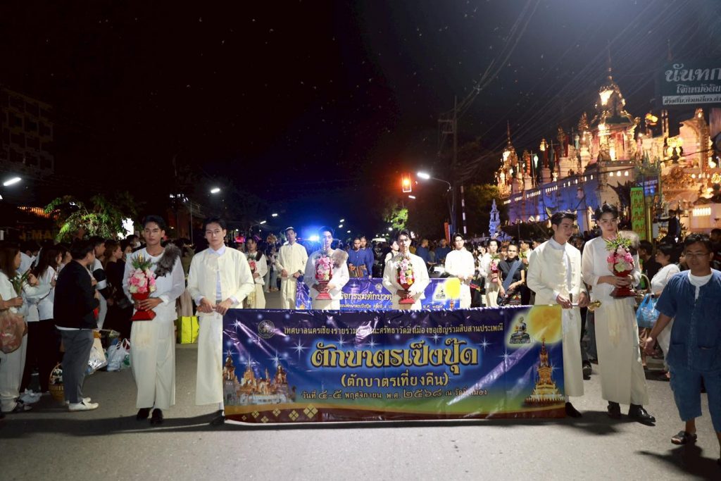 เมื่อเวลา 00.01 น. ของวันที่ 5 พฤศจิกายน 2568 ที่วัดมิ่งเมือง จังหวัดเชียงราย เทศบาลนครเชียงราย ร่วมกับวัดมิ่งเมือง จัดพิธี “ตักบาตรเป็งปุ๊ด” หรือตักบาตรเที่ยงคืน ตามประเพณีล้านนา