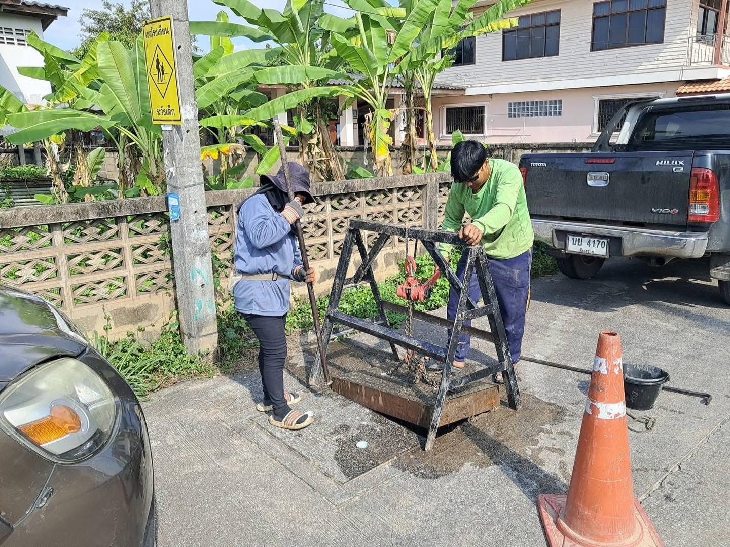 เทศบาลนครเชียงราย ดำเนินการขุดลอกท่อระบายน้ำภายในชุมชนเพื่อเพิ่มประสิทธิภาพการระบายน้ำและลดปัญหาน้ำท่วมขัง