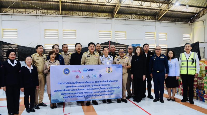 โดยมี นายชูชีพ พงษ์ไชย ผู้ว่าราชการจังหวัดเชียงราย เป็นประธานแถลงข่าวการลำเลียงเครื่องอุปโภคบริโภคและสิ่งของจำเป็น เพื่อส่งต่อให้ผู้ประสบอุทกภัยในพื้นที่ภาคใต้ ตามโครงการ “เจียงฮาย บ่ ลืม ส่งใจ๋ หื้อ หาดใหญ่” ซึ่งเป็นความร่วมมือของจังหวัดเชียงราย ฝูงบิน 416 เชียงราย และบริษัท พัทยา แอร์เวย์ จำกัด โดยมี นาวาอากาศเอกสกรรจ์ อุดล รักษาการผู้อำนวยการท่าอากาศยานแม่ฟ้าหลวงเชียงราย รองผู้ว่าราชการจังหวัดเชียงราย หัวหน้าส่วนราชการ เหล่ากาชาดจังหวัดเชียงราย เจ้าหน้าที่ และสื่อมวลชนเข้าร่วมการแถลงข่าวในครั้งนี้ ณ อาคารคลังสินค้า ท่าอากาศยานแม่ฟ้าหลวง เชียงราย