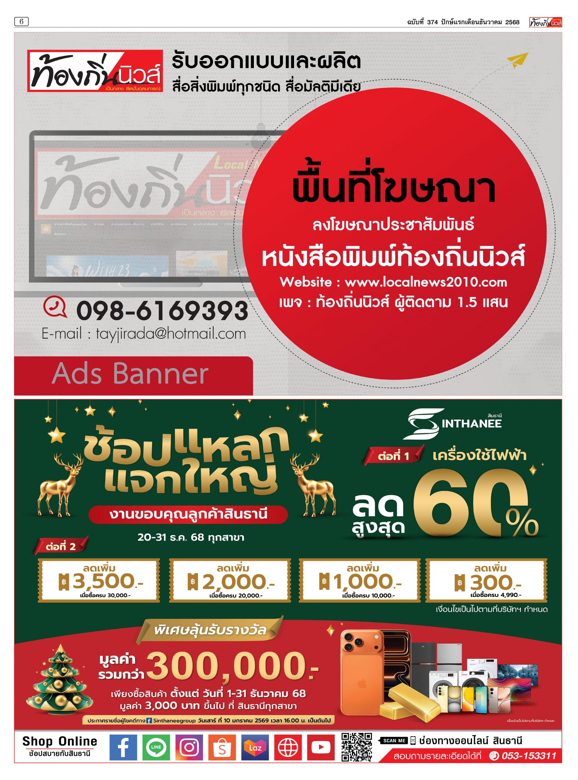 อ่านหนังสือพิมพ์ออนไลน์ หนังสือพิมพ์ท้องถิ่นนิวส์ ปักษ์แรก เดือนธันวาคม 2568 ปีที่ 16 ฉบับที่ 374 localnews 03/12/202503/12/2025 หนังสือพิมพ์ออนไลน์ FacebookFacebookXTwitterLINELine Post Views: 7,812 FacebookFacebookXTwitterLINELine