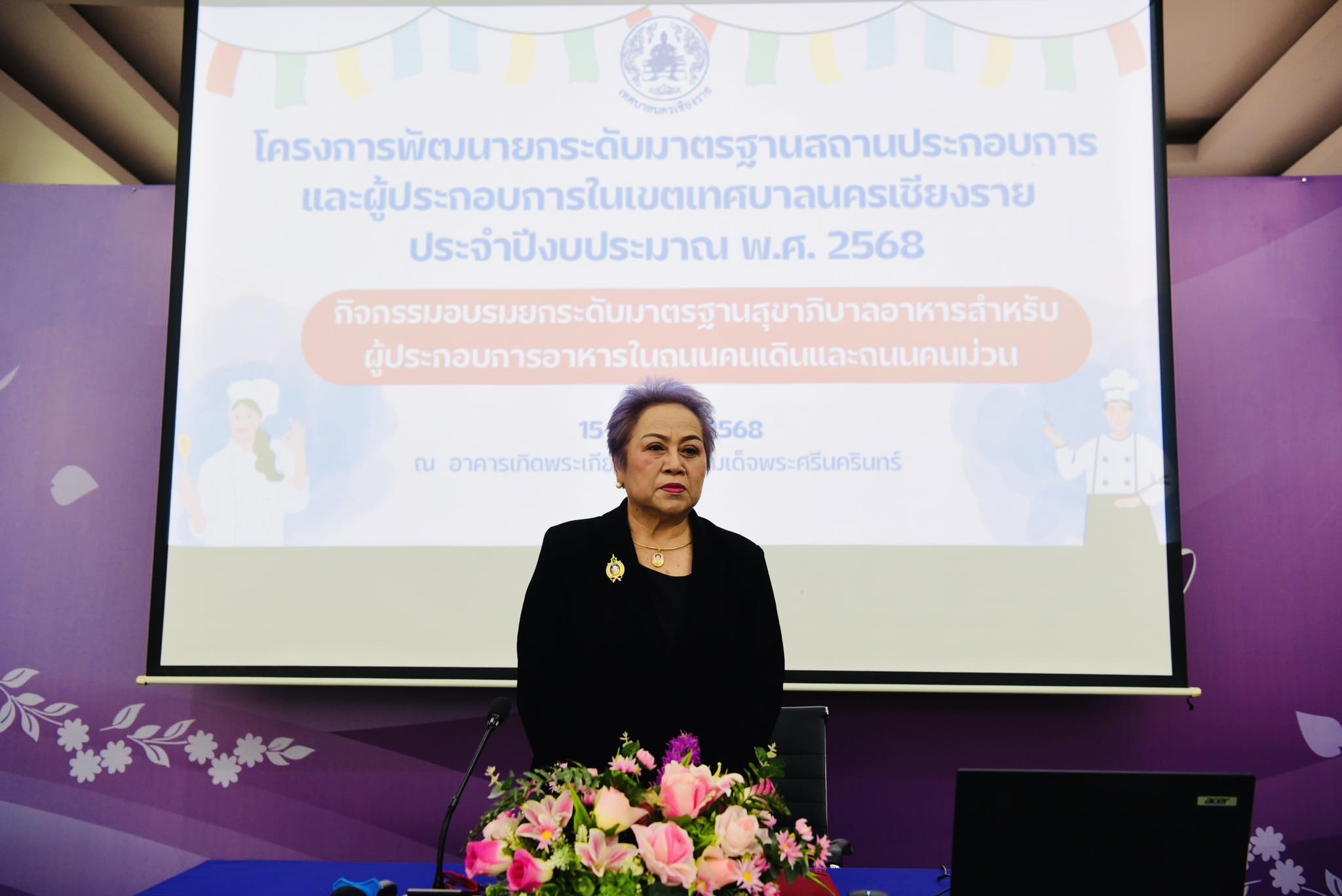 การอบรมจัดขึ้นระหว่างวันที่ 15–16 ธันวาคม 2568 รวม 2 วัน มีผู้เข้าร่วมอบรมวันละ 150 คน จากกลุ่มผู้ประกอบการอาหารถนนคนเดินเชียงราย ถนนคนม่วน รวมถึงเจ้าหน้าที่ที่เกี่ยวข้อง เพื่อให้ผู้ประกอบการสามารถนำความรู้ไปประยุกต์ใช้ในการประกอบอาชีพได้อย่างถูกต้อง สร้างความเชื่อมั่นและความปลอดภัยแก่ผู้บริโภค ตลอดจนยกระดับมาตรฐานการท่องเที่ยวของนครเชียงรายอย่างยั่งยืน.