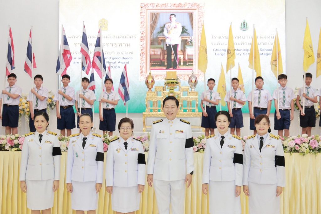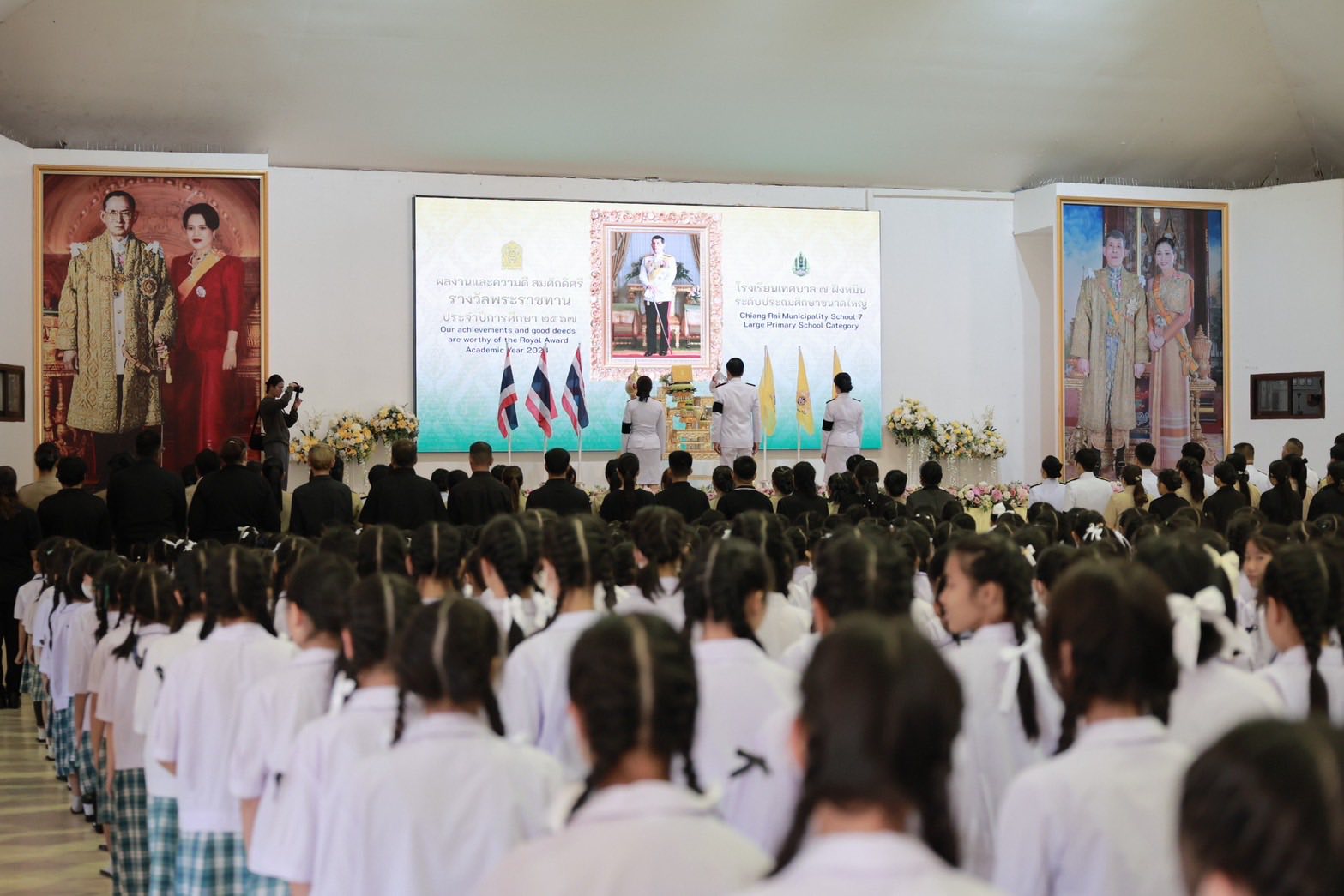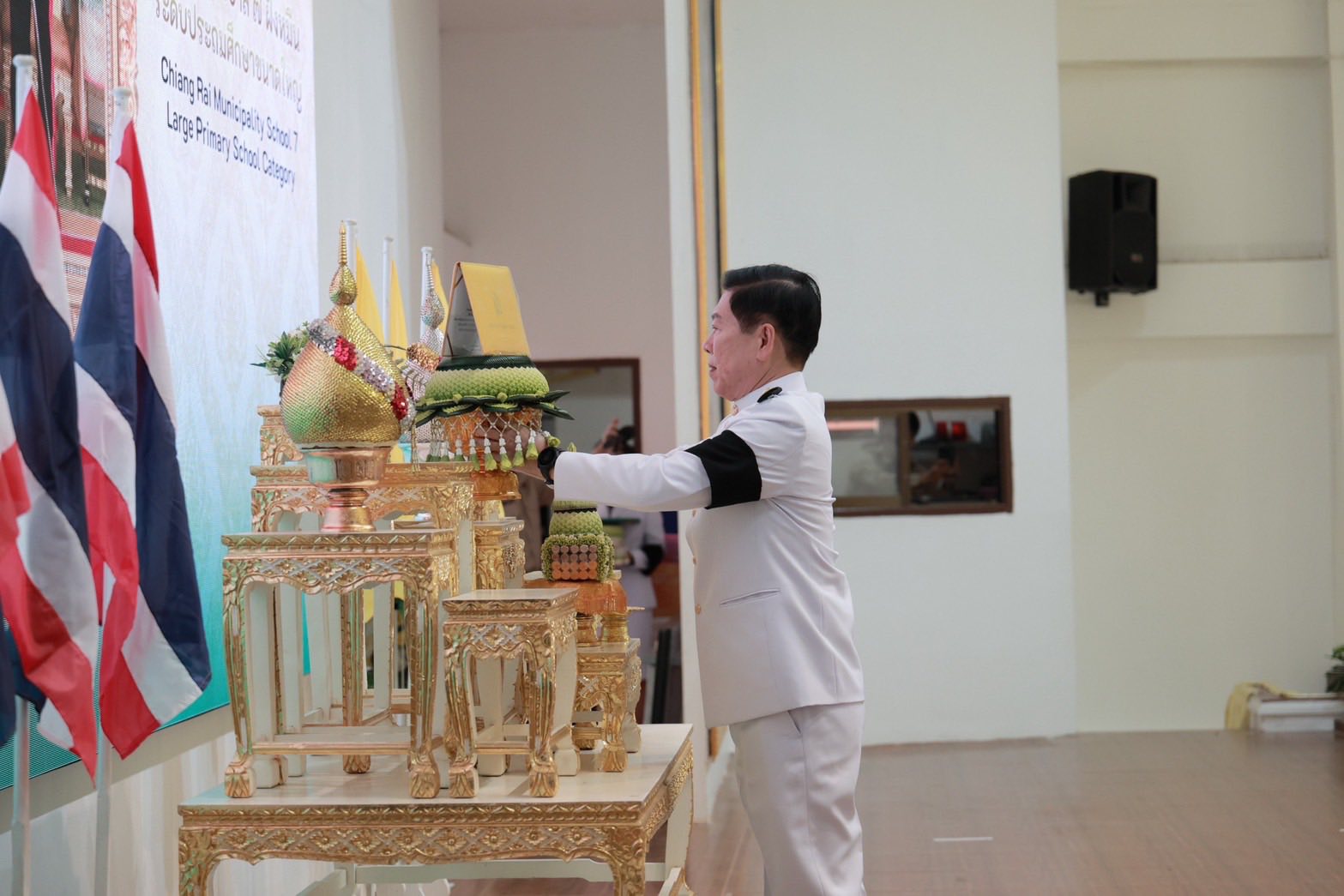 วันที่ 22 ธันวาคม 2568 เทศบาลนครเชียงรายโดย นายวันชัย จงสุทธานามณี นายกเทศมนตรีนครเชียงราย น.ส.วรรณพัชร จินดาขัด รองนายกเทศมนตรีนครเชียงราย นางอำไพ จันทร์เงิน ผอ.สำนักการศึกษา พร้อมด้วย นางนงค์ลักษณ์ ดุริยพันธ์ ผู้อำนวยการ คณะครู บุคลากรทางการศึกษา โรงเรียนเทศบาล 7 ฝั่งหมิ่น ร่วมอัญเชิญ“รางวัลสถานศึกษาพระราชทาน ระดับประถมศึกษาขนาดใหญ่ ประจำปีการศึกษา 2567 ” ขึ้นประดิษฐานบนแท่นพิธี ณ อาคารอเนกประสงค์ โรงเรียนเทศบาล 7 ฝั่งหมิ่น