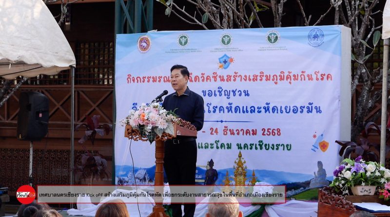 วันที่ 23 ธันวาคม 2568 นายวันชัย จงสุทธานามณี นายกเทศมนตรีนครเชียงราย เป็นประธาน จัดกิจกรรม Kick off สร้างเสริมภูมิคุ้มกันโรคหัด เพื่อยกระดับงานสาธารณสุขในพื้นที่อำเภอเมืองเชียงรายโดยเทศบาลนครเชียงราย ร่วมกับภาคีเครือข่ายด้านสาธารณสุข ขับเคลื่อนนโยบาย เพิ่มศักยภาพอาสาสมัครสาธารณสุขประจำชุมชนในการดูแลประชาชนอย่างใกล้ชิด