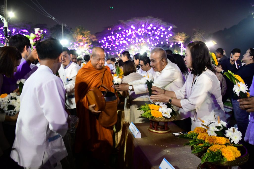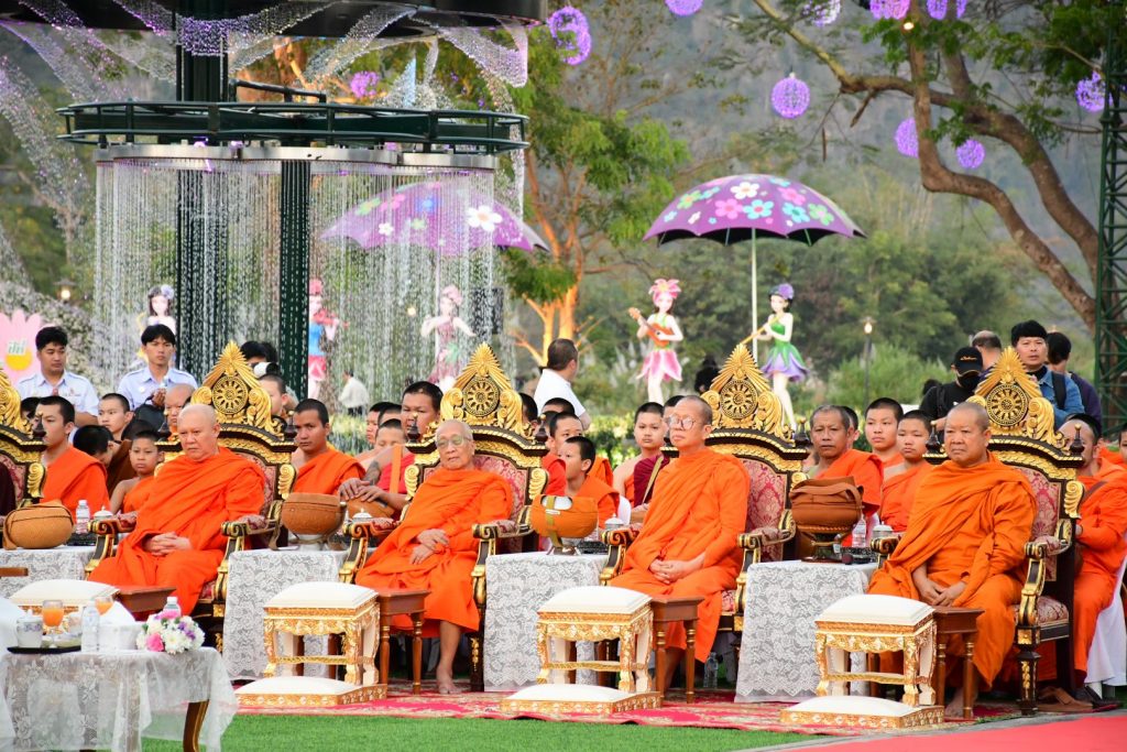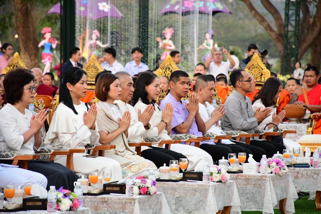 โดยได้นิมนต์พระสงฆ์ชั้นผู้ใหญ่ 7 รูป นำโดย พระราชวชิรคณี (ประเสริฐ ปญฺญาวชิโร) เจ้าคณะจังหวัดเชียงราย ออกรับบิณฑบาต รวมพระสงฆ์และสามเณรทั้งสิ้น 94 รูป ท่ามกลางความเลื่อมใสของผู้ร่วมพิธี