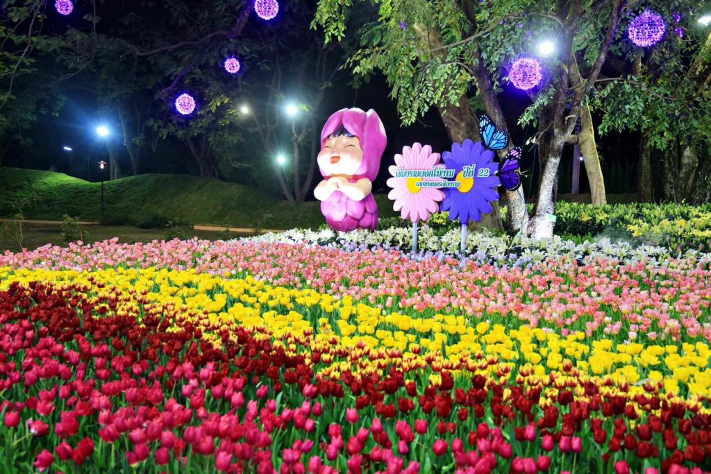 ดอกไม้เมืองหนาวบานสะพรั่ง ยามค่ำคืนตระการตาแสงไฟ ในงานเชียงรายดอกไม้งามปีที่ 22