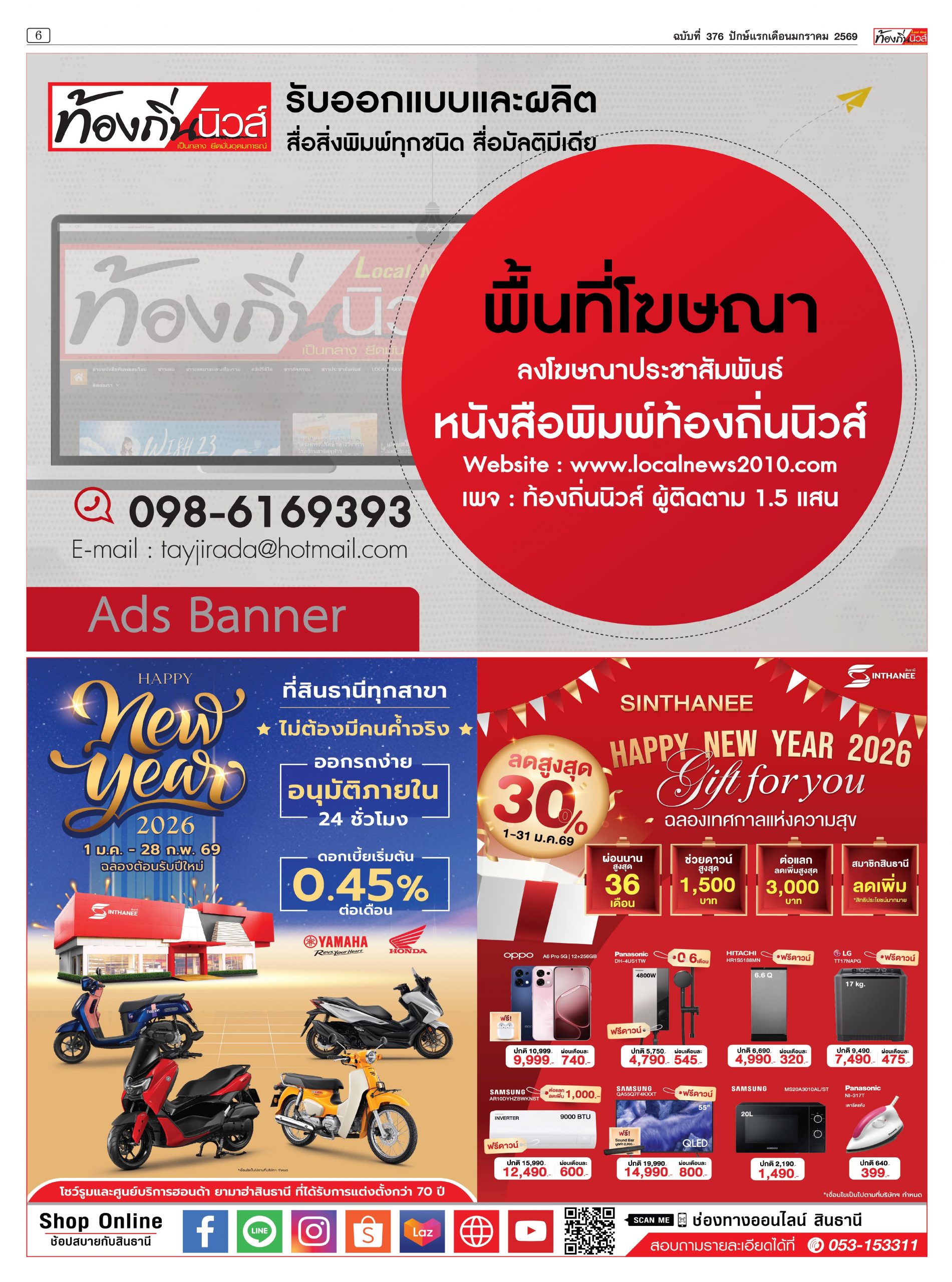 อ่านหนังสือพิมพ์ออนไลน์ หนังสือพิมพ์ท้องถิ่นนิวส์ ปักษ์แรก เดือนมกราคม 2569 ปีที่ 16 ฉบับที่ 376 localnews 05/01/202613/01/2026 หนังสือพิมพ์ออนไลน์ FacebookFacebookXTwitterLINELine Post Views: 50,161 FacebookFacebookXTwitterLINELine