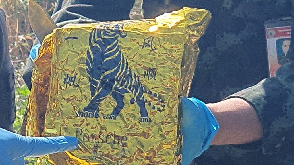 ต่อมาเวลา 07.00 วันที่ 8 มกราคม 2569 หน่วยได้เข้าตรวจสอบพื้นที่เกิดเหตุ ไม่พบผู้กระทำผิดบาดเจ็บหรือเสียชีวิต และตรวจพบกระสอบ จำนวน 10 กระสอบ ภายในบรรจุยาเสพติดให้โทษประเภท 1 (ไอซ์) กระสอบละ 20 ก้อน น้ำหนักก้อนละ 1 กก. รวมน้ำหนักทั้งสิ้นประมาณ 245 กก. หน่วยจึงได้ประสานหน่วยงานความมั่นคงในพื้นที่ เข้าดำเนินการตรวจสอบพื้นที่ สามารถควบคุม ตัวผู้ต้องสงสัยได้ 1 คนซุ่มหลบอยู่ใกล้กับจุดปะทะ ทราบชื่อคือนายจ่อย (ไม่มีนามสกุล) เป็นชาวเมียนมา สารภาพว่าเป็นหนึ่งในกลุ่มผู้ลำเลียงยาเสพติดดังกล่าวทางเจ้าหน้าจึงได้ควบคุมตัวเอาไว้