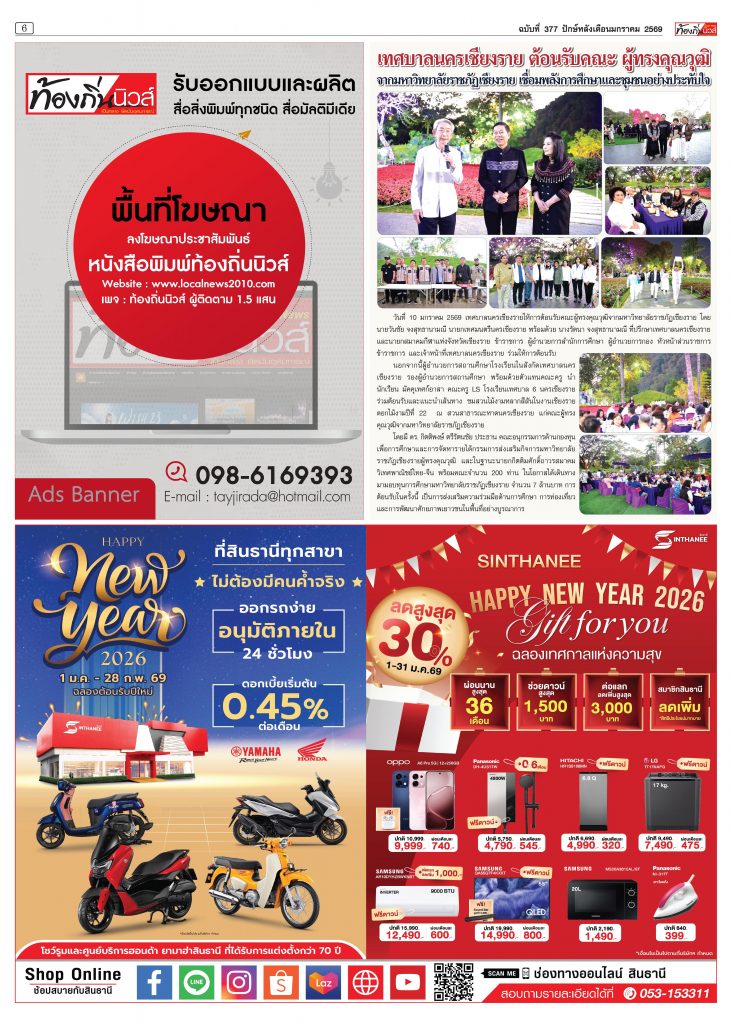 อ่านหนังสือพิมพ์ออนไลน์ หนังสือพิมพ์ท้องถิ่นนิวส์ ปักษ์หลัง เดือนมกราคม 2569 ปีที่ 16 ฉบับที่ 377 localnews 17/01/202617/01/2026 หนังสือพิมพ์ออนไลน์ FacebookFacebookXTwitterLINELine Post Views: 1,034 FacebookFacebookXTwitterLINELine