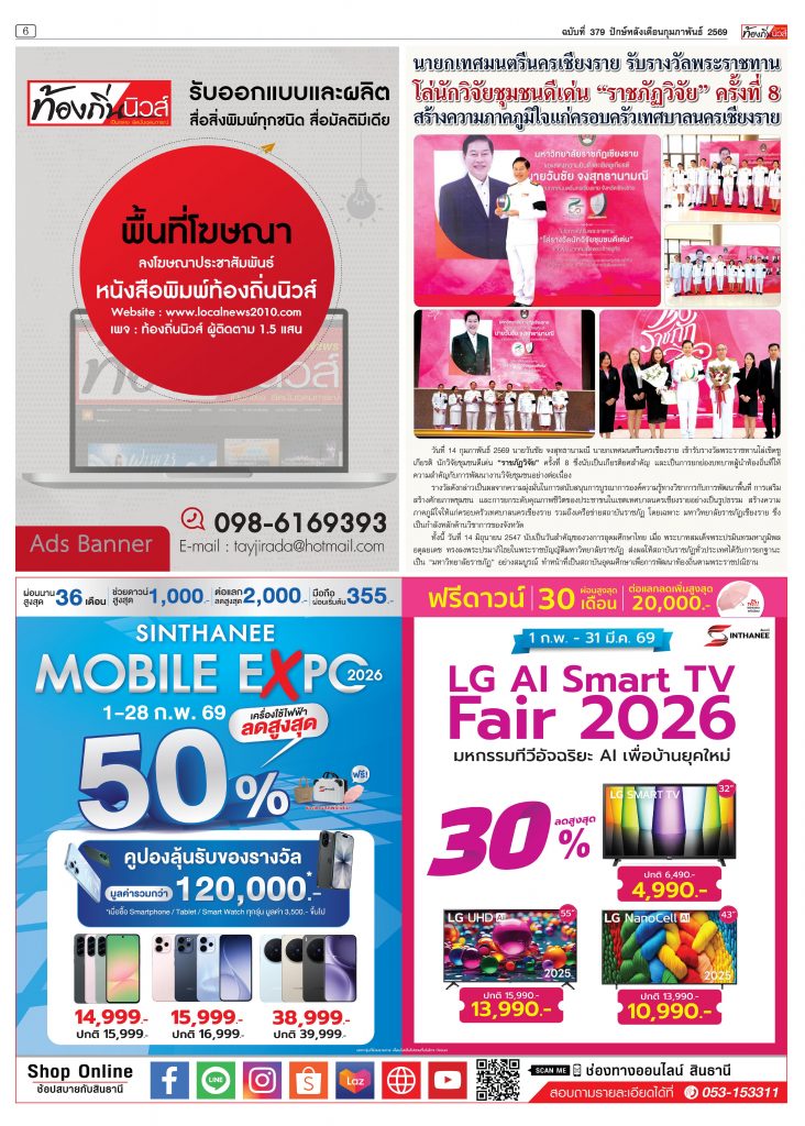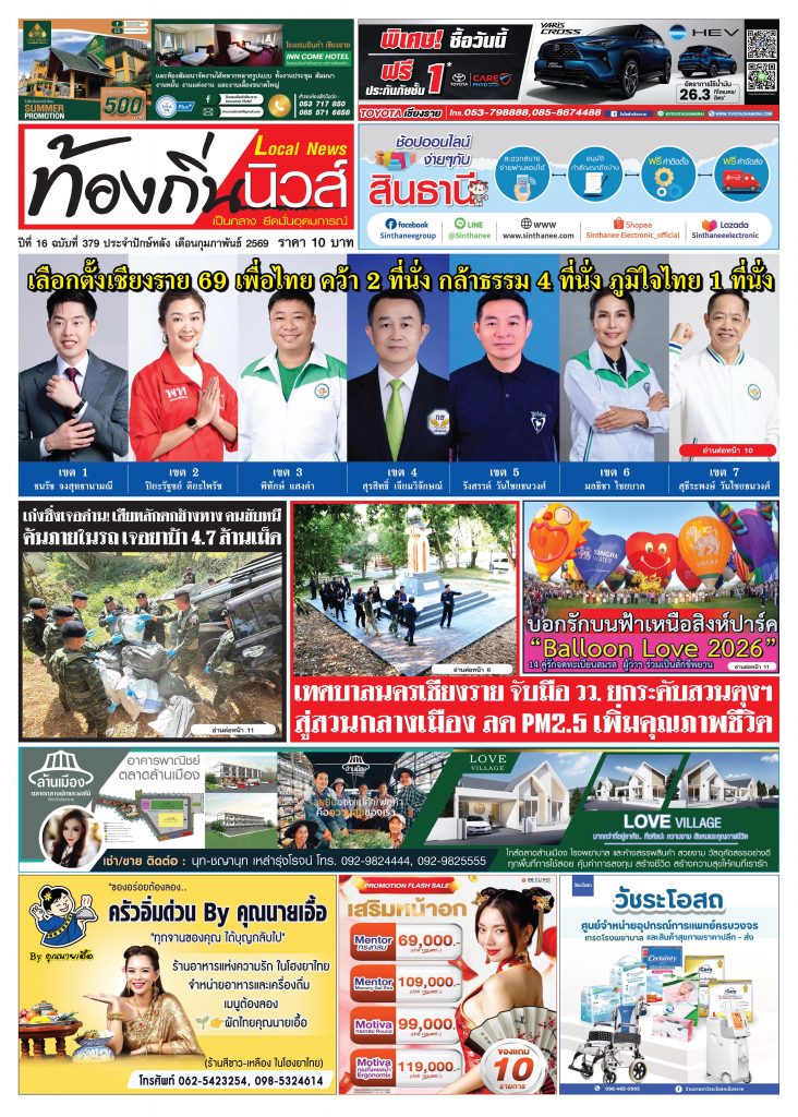 อ่านหนังสือพิมพ์ออนไลน์ หนังสือพิมพ์ท้องถิ่นนิวส์ ปักษ์หลัง เดือนกุมภาพันธ์ 2569 ปีที่ 16 ฉบับที่ 379 localnews 18/02/202623/02/2026 หนังสือพิมพ์ออนไลน์ FacebookFacebookXTwitterLINELine Post Views: 42,721 FacebookFacebookXTwitterLINELine