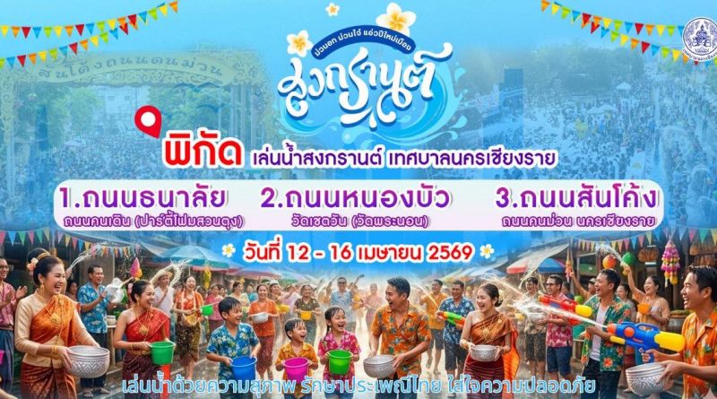 เทศบาลนครเชียงรายโดย นายวันชัย จงสุทธานามณี นายกเทศมนตรีนครเชียงราย คณะผู้บริหาร สมาชิกสภา ข้าราชการ เจ้าหน้าที่ และพี่น้องประชาชนนครเชียงราย ร่วมจัดงานป๋าเวณีปี๋ใหม่เมือง เนื่องในประเพณีสงกรานต์ประจำปี 2569 ภายในงานมีกิจกรรมหลากหลาย อาทิ การแห่ไม้ค้ำสรี ตักบาตรวันขึ้นปี๋ใหม่ ขบวนแห่ปี๋ใหม่เมือง พิธีสรงน้ำพระ รดน้ำดำหัวผู้สูงอายุ ปาร์ตี้โฟม และกิจกรรมถนนวัฒนธรรม เทศบาลนครเชียงราย ขอเชิญทุกท่านร่วมแต่งกายชุดพื้นเมือง สัมผัสบรรยากาศล้านนา และเฉลิมฉลองปีใหม่ไทยไปด้วยกัน