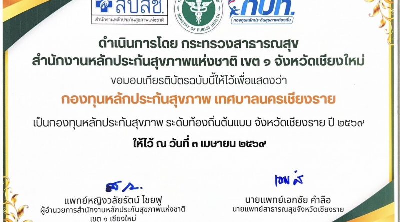 กองทุนหลักประกันสุขภาพเทศบาลนครเชียงราย ต้นแบบกองทุนหลักประกันสุขภาพระดับท้องถิ่นจังหวัดเชียงรายปี 2569