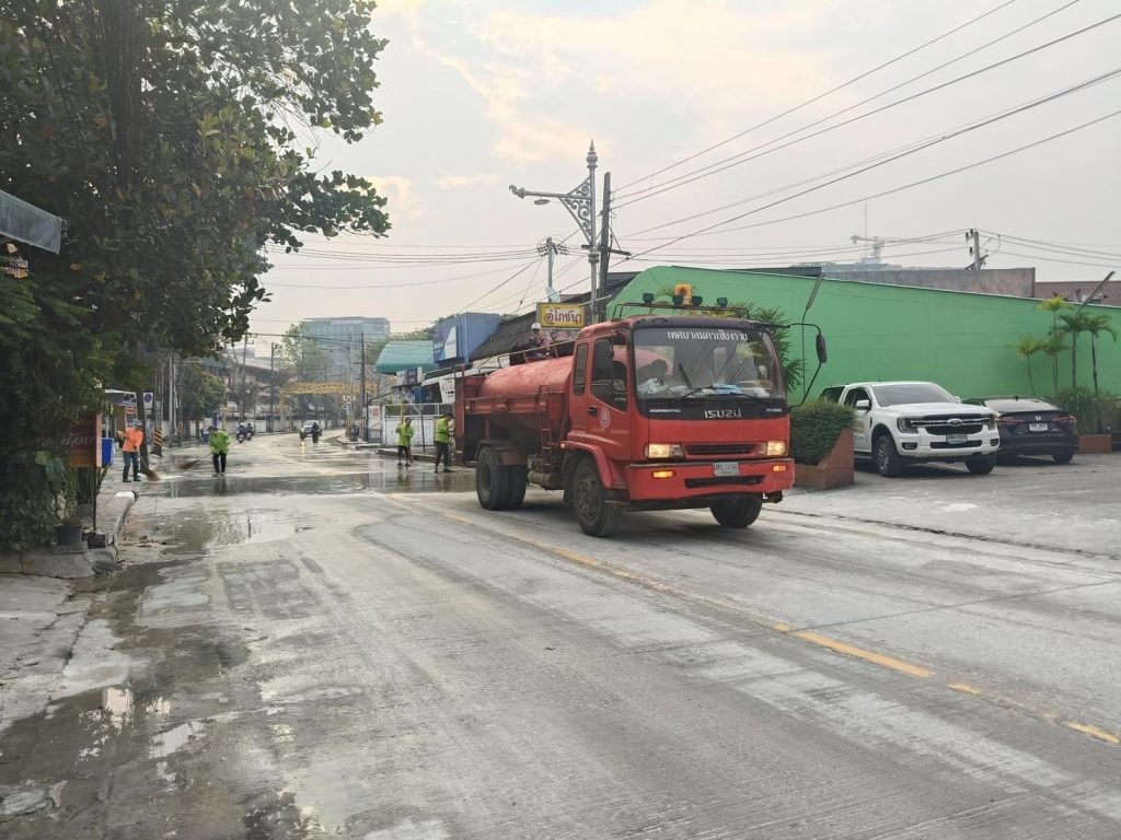 เทศบาลนครเชียงราย ลุยล้างถนนสันโค้งหลังจบกิจกรรม “ถนนคนเล่นน้ำสันโค้ง” คืนความสะอาด สร้างความปลอดภัยให้ประชาชน