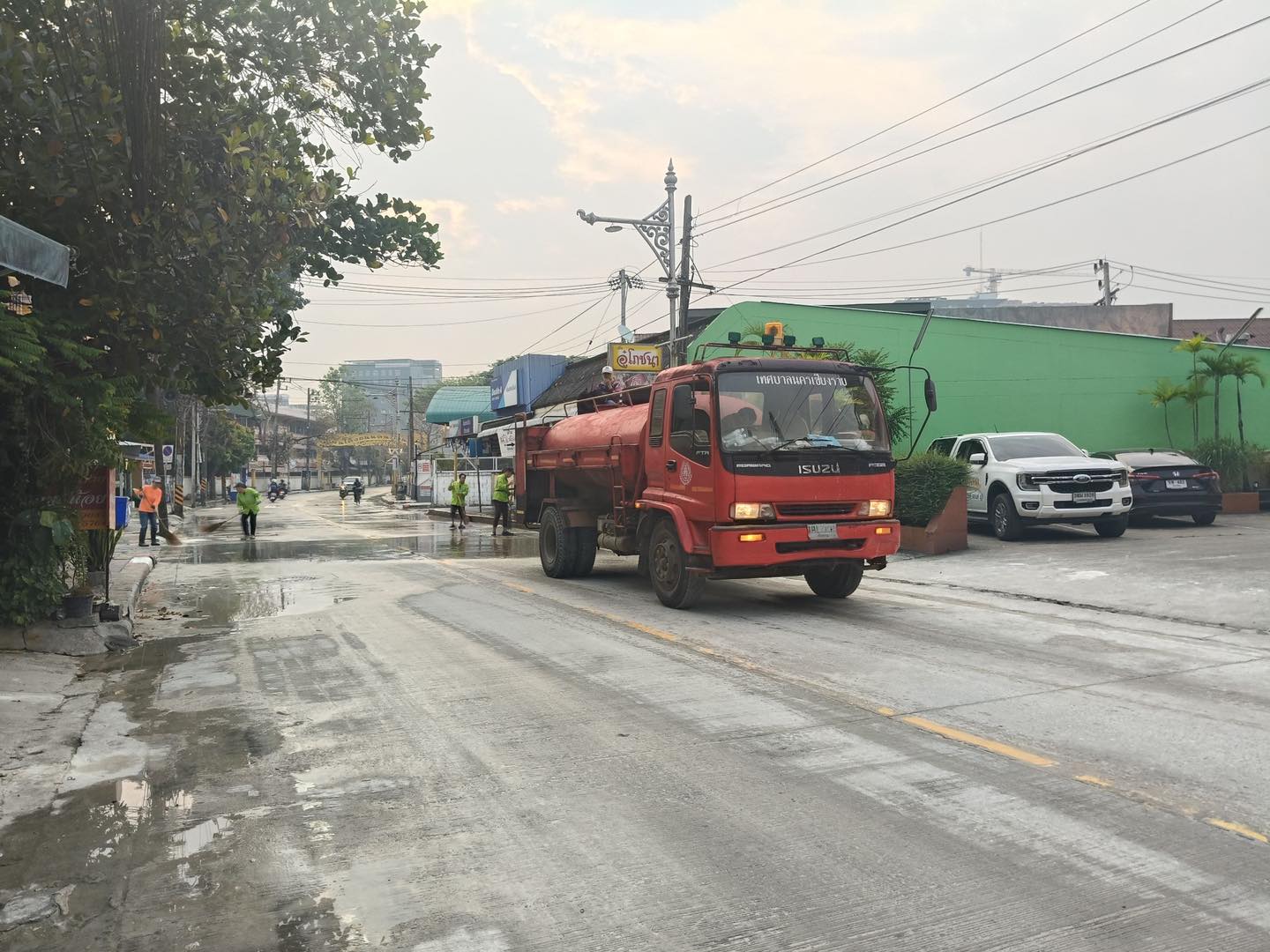 วันที่ 17 เมษายน 2569 นายวันชัย จงสุทธานามณี นายกเทศมนตรีนครเชียงราย มอบหมายให้ นายไพรัตน์ รัตนชมพู ผอ.และเจ้าหน้าที่กองสาธารณสุขและสิ่งแวดล้อม ดำเนินการล้างทำความสะอาดถนนสันโค้งน้อยอย่างต่อเนื่องทันที ภายหลังเสร็จสิ้นกิจกรรม “ถนนคนเล่นน้ำสันโค้ง” เพื่อฟื้นฟูสภาพพื้นที่ให้กลับมาสะอาด เป็นระเบียบ และปลอดภัยต่อการสัญจรของประชาชน
