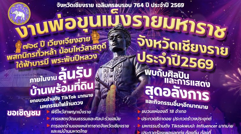 มาแล้วจ้า…งานพ่อขุนเม็งรายมหาราช…เริ่ม 26 ม.ค.-4 ก.พ.69