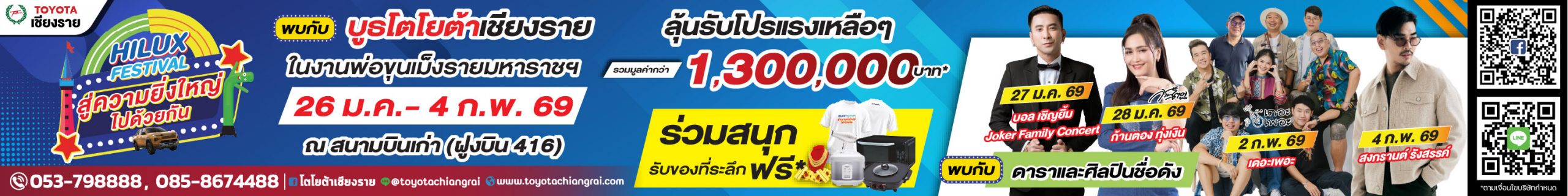 1 คนให้ = หลายชีวิตได้โอกาส มาร่วมเป็นผู้ให้ ด้วยการบริจาคโลหิต เพราะทุกหยดเลือด คือ ความหวังของผู้ป่วย 23 ม.ค. 2569 | 09.00–12.00 น. ณ โชว์รูมโตโยต้าเชียงราย สำนักงานใหญ่ สอบถามเพิ่มเติม โทร.081-9808118